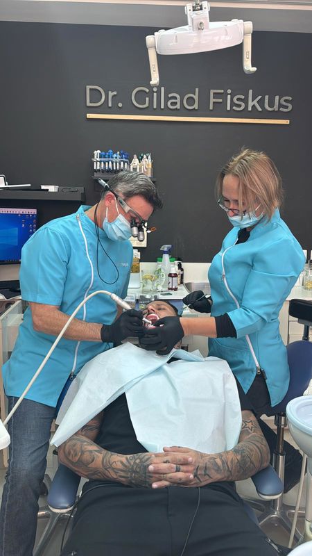 כשקארין עליה מלכת היופי של ישראל עושה הלבנת שיניים אצל ד"ר גלעד פיסקוס לפני הכניסה